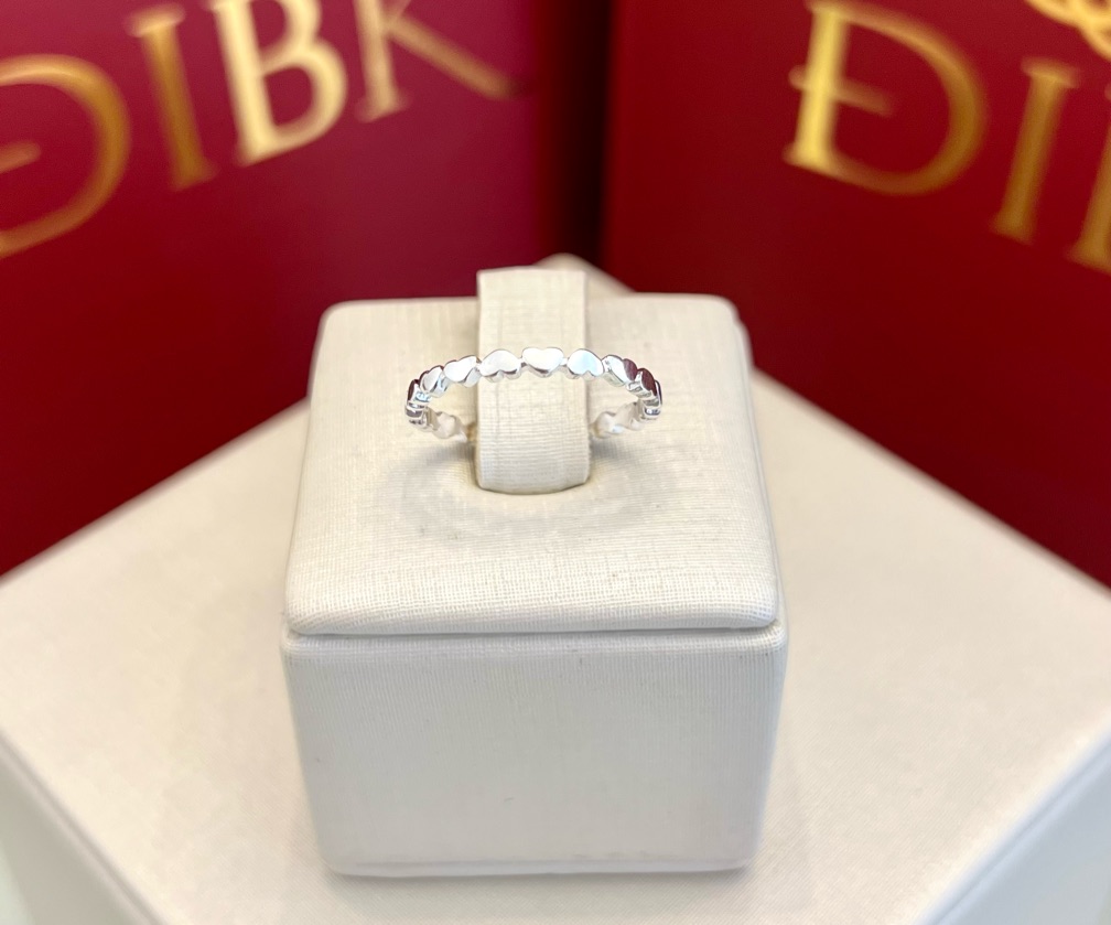Este anel apresenta um design moderno e minimalista, com um aro fino em prata e uma sequência de delicados corações vazados. Uma joia romântica e charmosa, perfeita para adicionar um toque de feminilidade e leveza ao seu look.