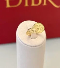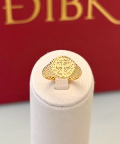 O anel São Bento é uma peça que combina elegância e simbolismo. Feito em material dourado, apresenta um design clássico que destaca a medalha de São Bento, conhecida por sua proteção e bênçãos.