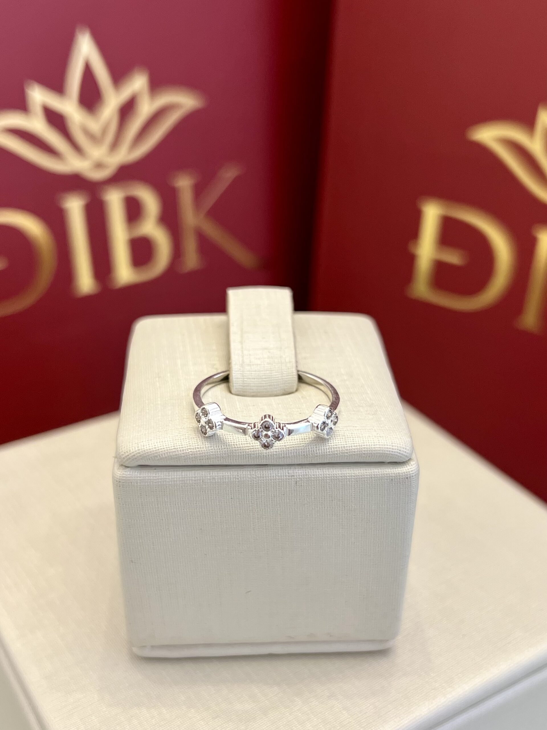 Este anel de prata apresenta um design delicado com um aro fino adornado com pequenos detalhes que lembram flores ou estrelas, com pontos de brilho. Uma joia minimalista e charmosa, perfeita para adicionar um toque de brilho sutil ao seu visual.