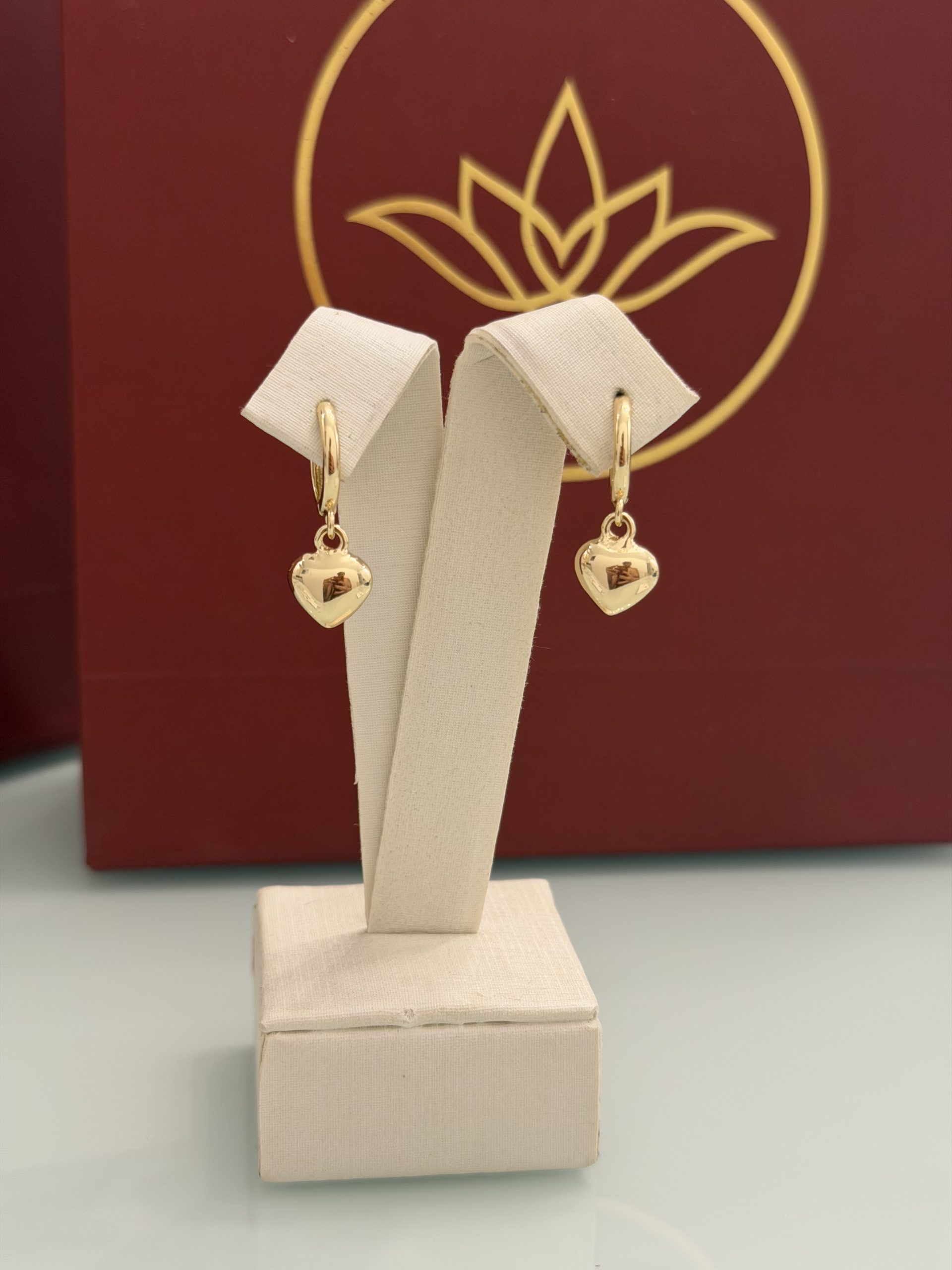 Com um formato de coração liso e acabamento polido, essa argola dourada entrega um visual moderno e romântico ao mesmo tempo. Uma peça curinga para quem gosta de acessórios que combinam facilmente com diversos estilos e composições.