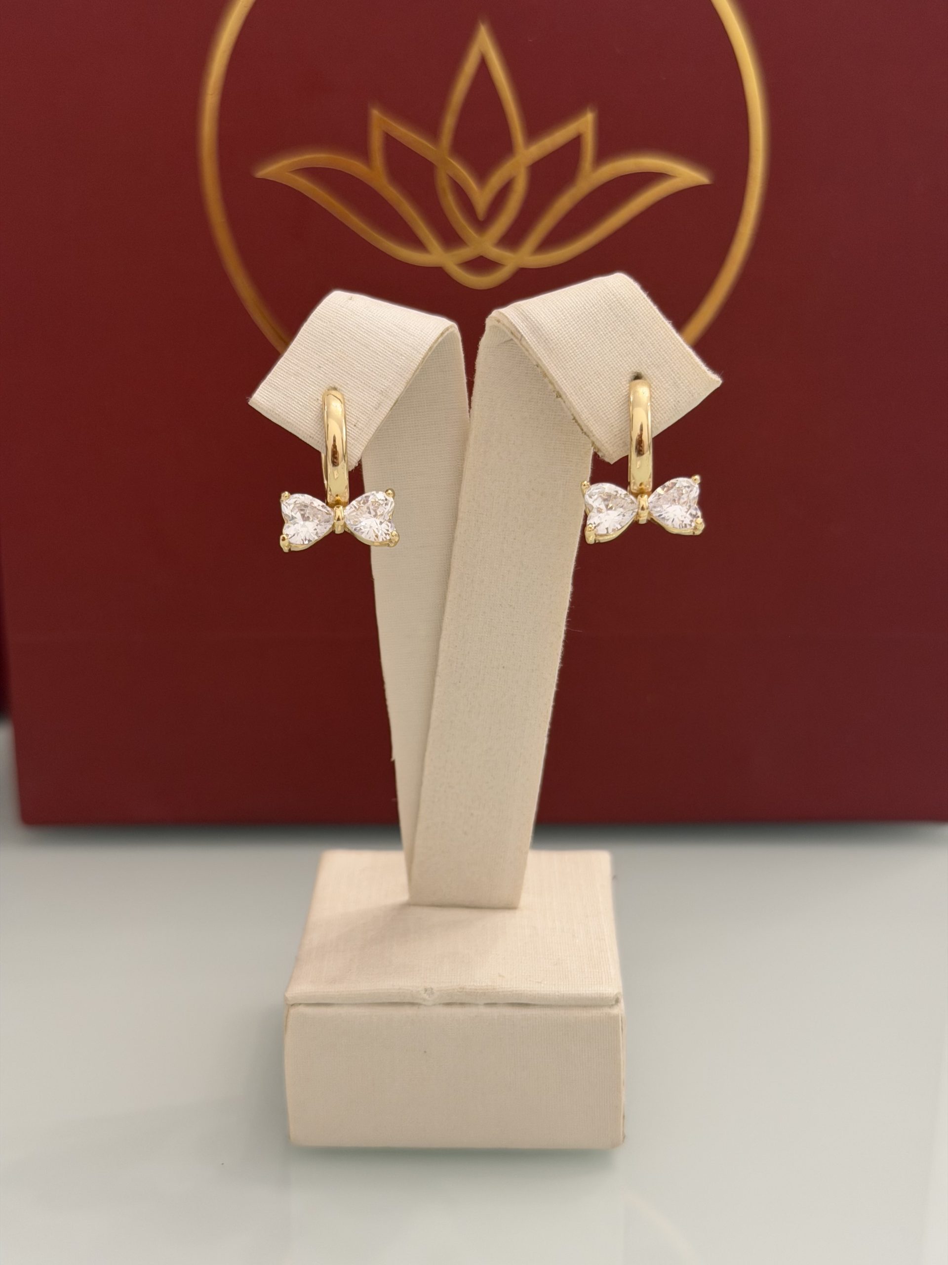 O design delicado de laço deixa o visual com um toque feminino e marcante. O dourado brilhante valoriza o formato, criando um acessório que se destaca com charme e personalidade. Perfeito para quem ama detalhes que fazem diferença.