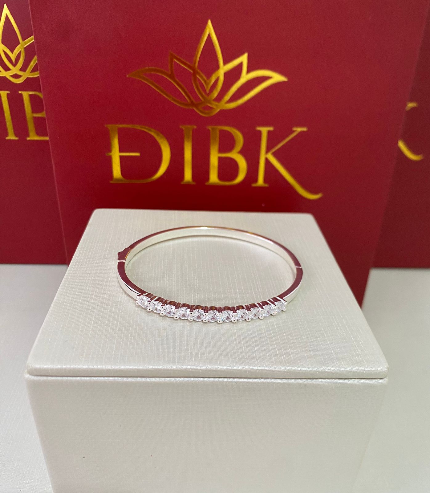 A peça é uma pulseira elegante e sofisticada, com um design delicado e minimalista. Feita em prata 925, possui uma estrutura fina e rígida, no estilo de bracelete. A parte superior da pulseira é adornada com uma fileira de pedras brilhantes, possivelmente zircônias, dispostas de forma simétrica e crescente no centro, proporcionando um brilho refinado. O acabamento polido e a leveza do design tornam a peça versátil, ideal tanto para o uso diário quanto para ocasiões especiais.