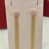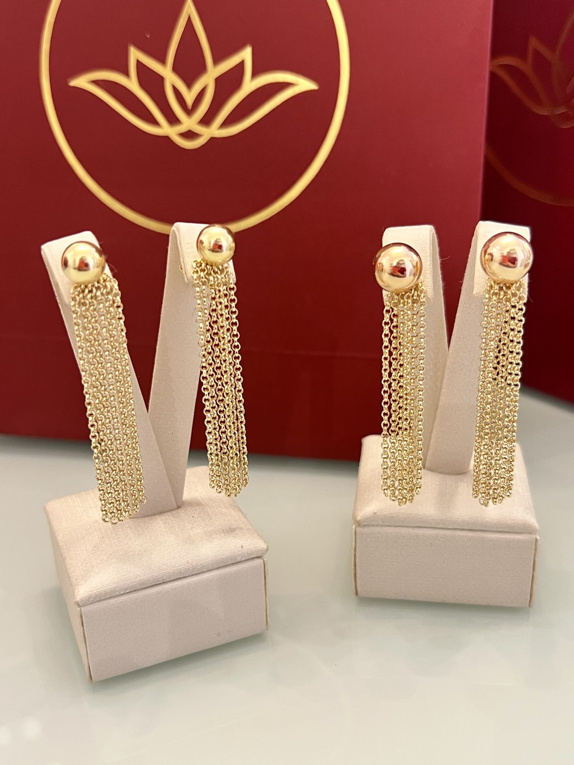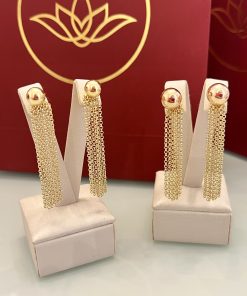 Brinco dourado 2 em 1 disponível em dois tamanhos: bola média ou bola menor. O modelo acompanha franja de correntes douradas removível, permitindo duas formas de uso: apenas a bola lisa, para um visual mais clean, ou com a franja, que adiciona movimento e destaque. Uma peça prática, com acabamento delicado e brilho equilibrado.