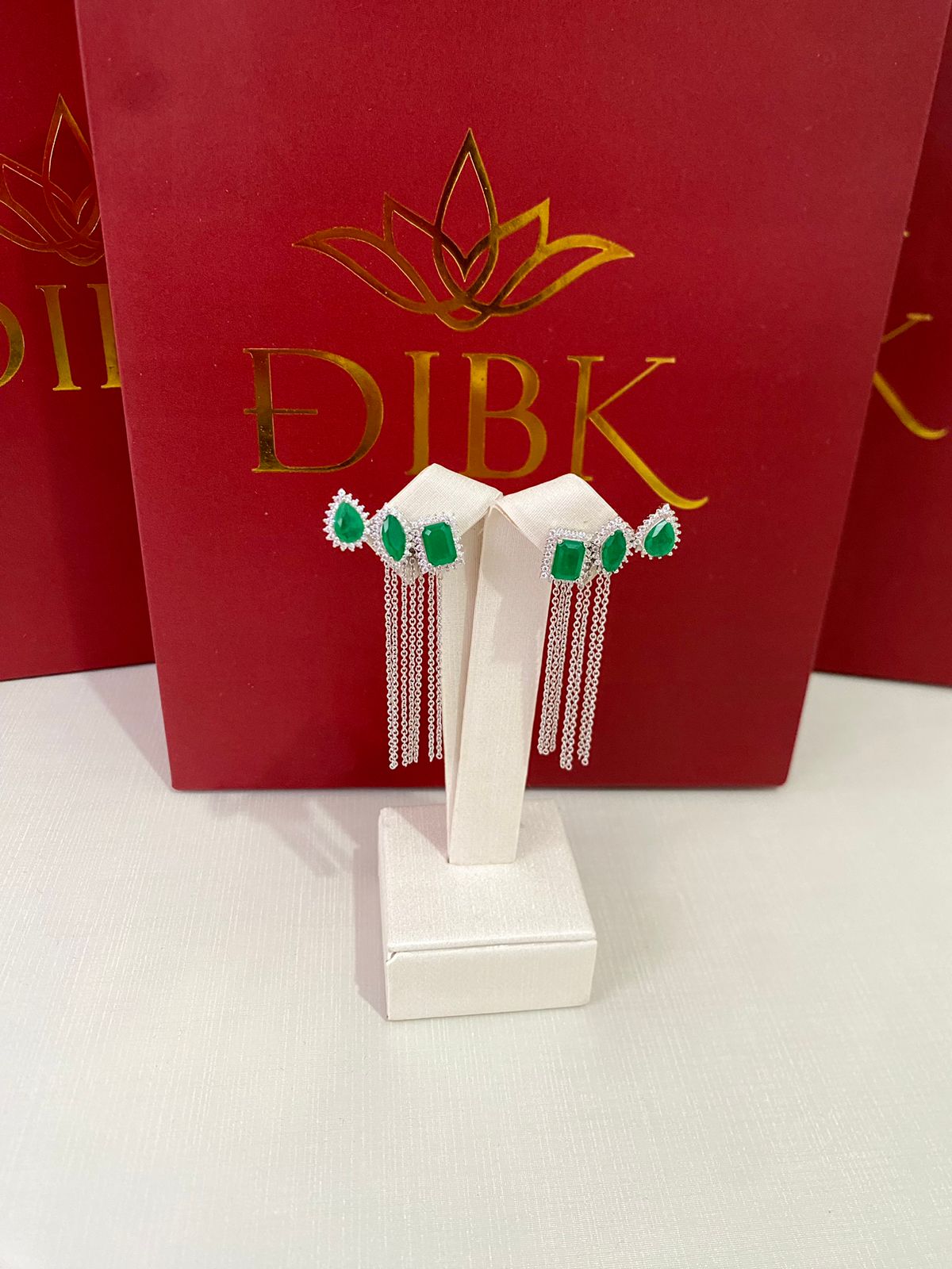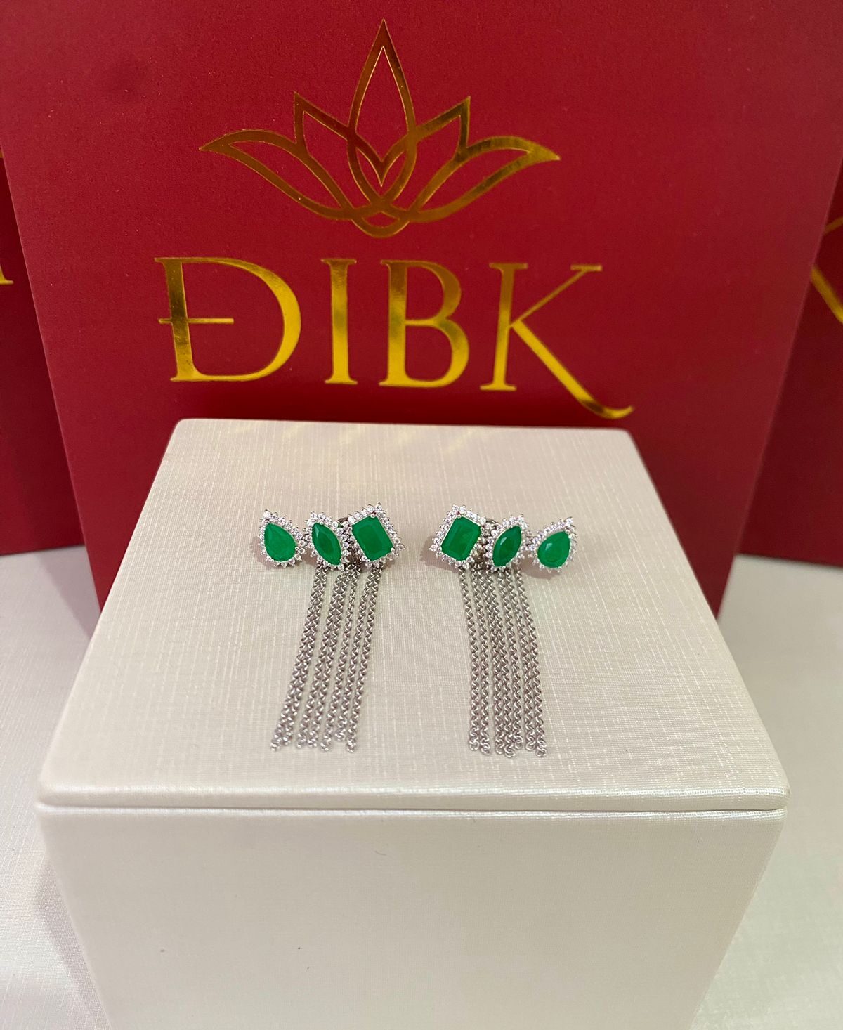 Brinco earcuff esmeralda com franja