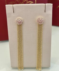 Brinco 2 em 1 flor cravejada/franja