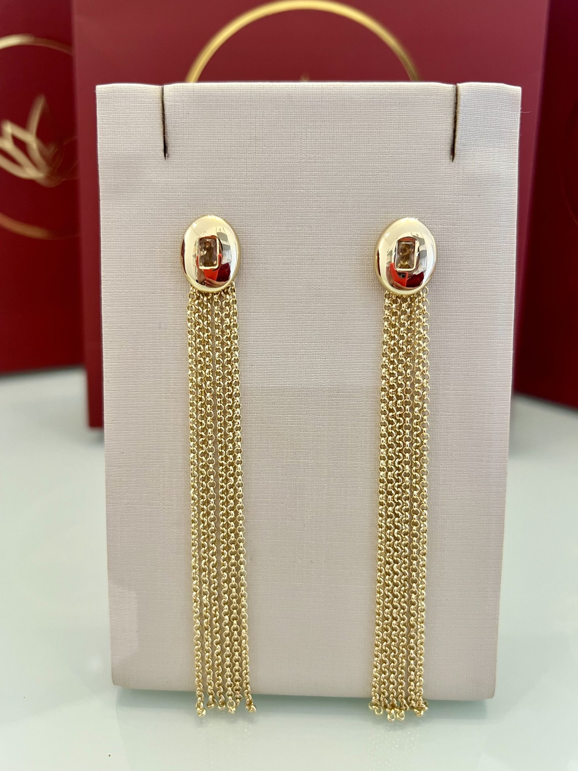 Brinco dourado com base lisa e design clean, destacando uma pedra cristal central que traz um ponto de brilho delicado à peça. Acompanha franja de correntes douradas removível, permitindo duas formas de uso: apenas o brinco liso com a pedra cristal, para uma proposta mais discreta, ou com a franja, que adiciona movimento e presença ao visual. Um modelo prático, com acabamento bem definido e brilho na medida certa.