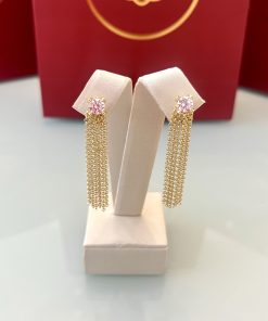 Esse modelo 2 em 1 combina praticidade e brilho em uma única peça. A pedra rosa de 6MM cria um ponto de luz marcante, destacando o tom dourado que envolve toda a base do brinco. Você pode usar apenas o ponto de luz para um visual mais discreto, ou acrescentar as correntes douradas para transformar o look, trazendo movimento e um efeito iluminado que chama atenção. Uma peça que se adapta ao seu estilo e entrega presença em qualquer composição, com acabamento impecável e brilho intenso.