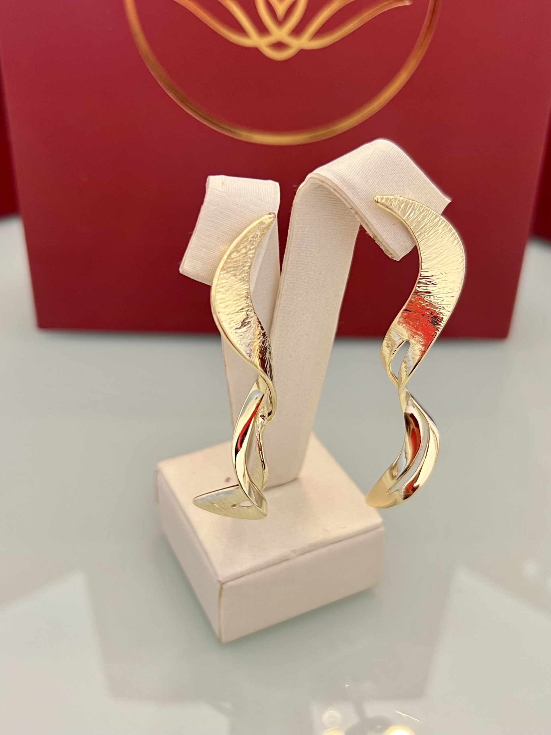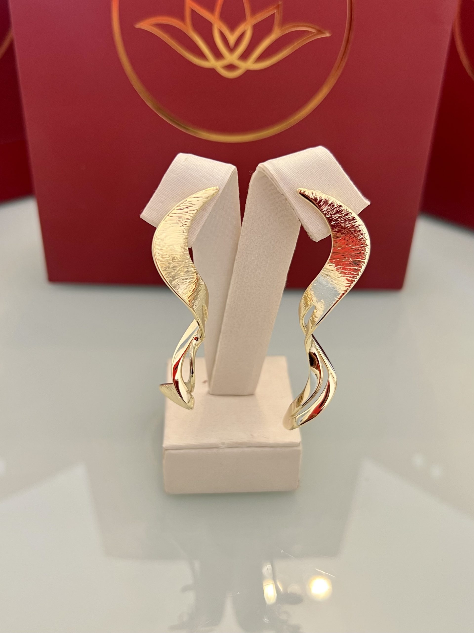 Brinco com curvas suaves e acabamento liso, que destacam um design ondulado de visual impactante. Uma peça de presença, com linhas fluídas e estética contemporânea, perfeita para compor produções modernas e cheias de estilo.