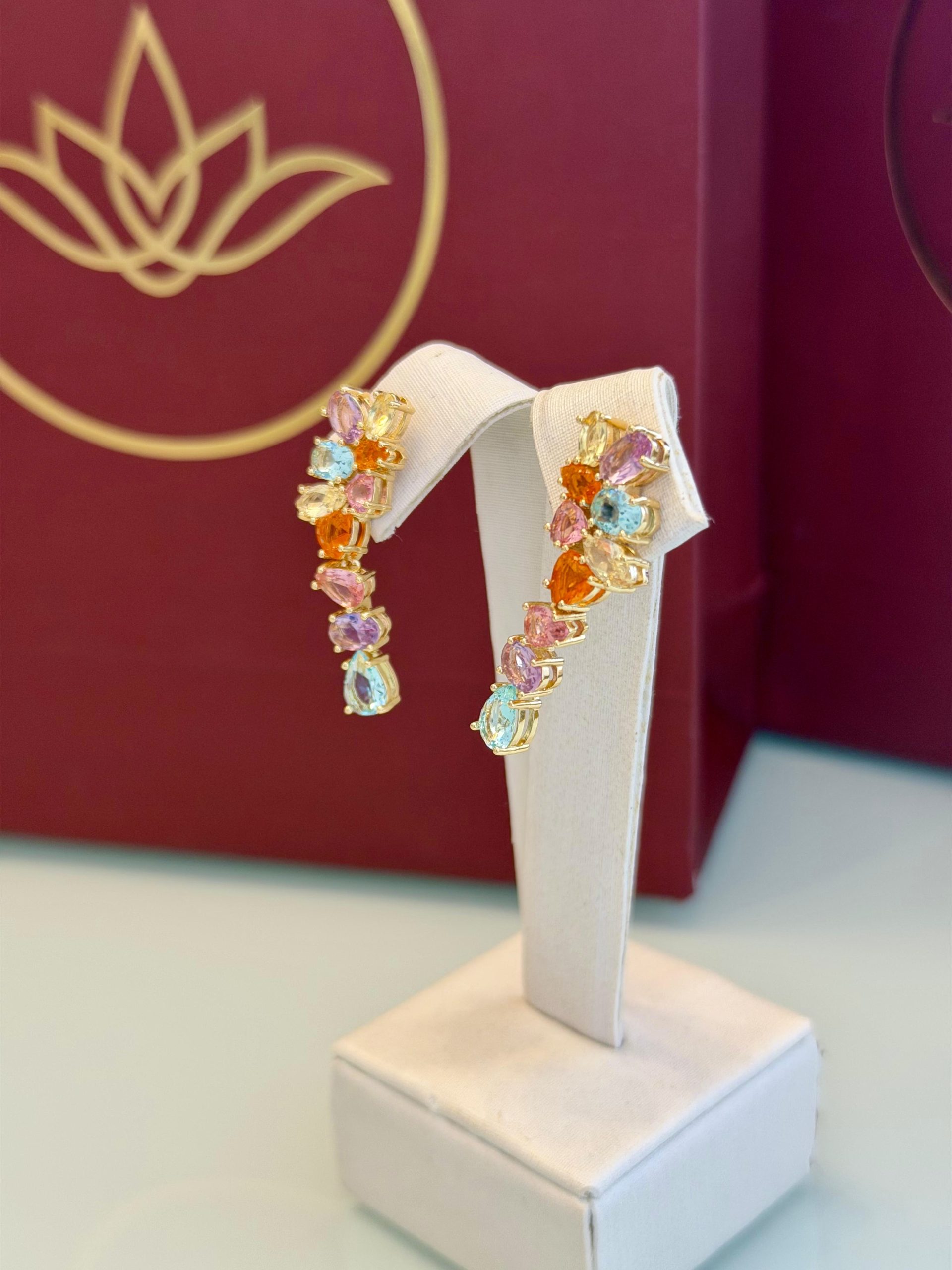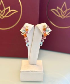Com um encaixe moderno que acompanha a orelha, o earcuff colorido traz um visual cheio de personalidade. As pedras multicoloridas refletem a luz de maneira vibrante, criando um efeito alegre e marcante em cada movimento. O banho do ouro realça o brilho das cores, deixando a peça ainda mais charmosa. Um acessório ideal para quem adora destacar o look com estilo e atitude, transformando qualquer produção com um toque contemporâneo e iluminado.