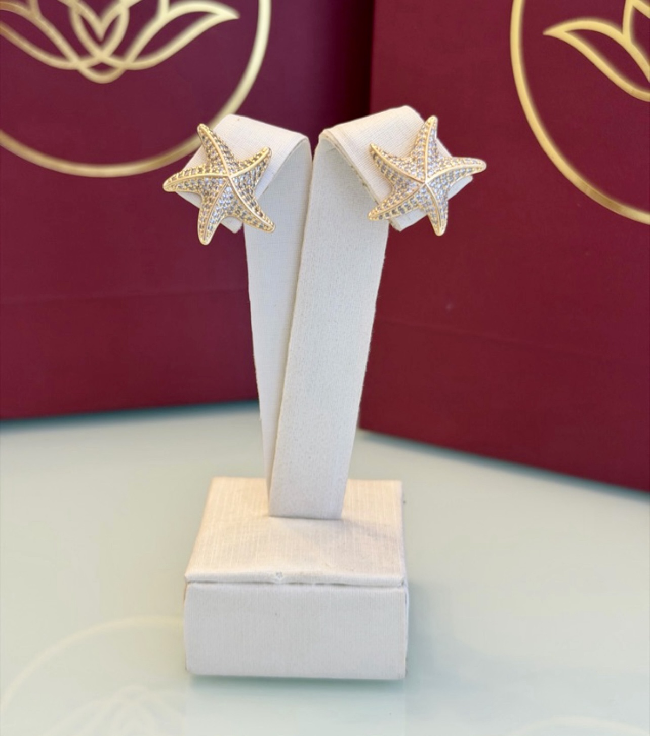 O formato de estrela, todo cravejado com cristais claros, traz um efeito iluminado que destaca o rosto com charme. O dourado cria contraste com o brilho das pedras e deixa o visual leve e radiante. Ideal para quem ama acessórios delicados, mas que não passam despercebidos.