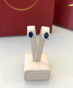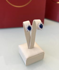 Brinco em formato de flor com pedra central na cor azul-escuro, criando um contraste marcante e cheio de charme. O contorno é cravejado com zircônias brancas de 1,5mm, que realçam o brilho e destacam ainda mais o desenho delicado da peça. Medida de 5,5mmx8mm, ideal para quem busca um acessório delicado e iluminado para o dia a dia.