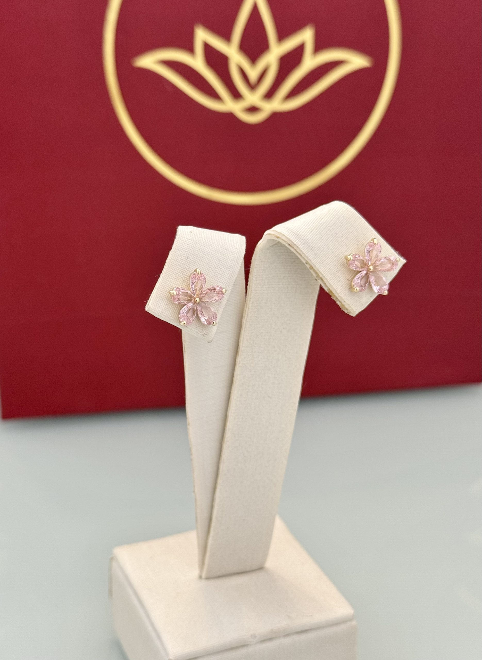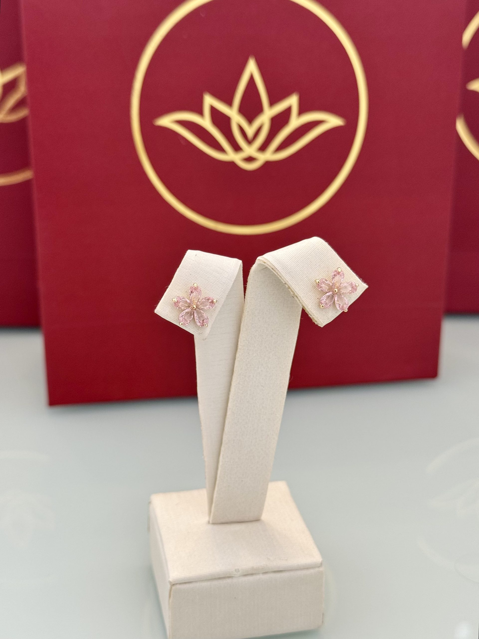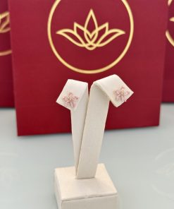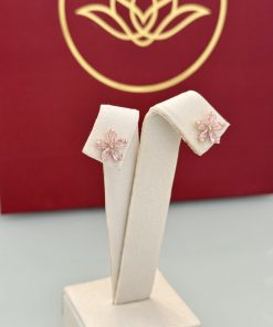 Um brinco em formato de flor, com pedras em rosa claro que proporcionam um brilho suave. O tom delicado reforça o desenho da flor, criando um ponto de luz romântico na orelha. A peça tem presença marcante sem deixar de ser leve.