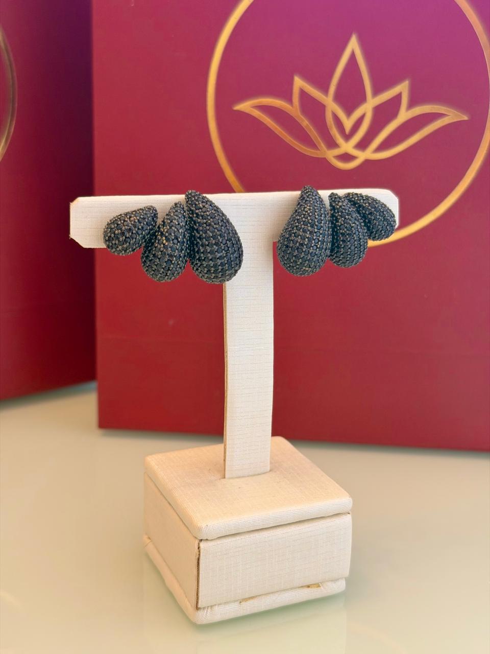 A pedra em tom preto profundo, em formato de gota, cria um contraste sofisticado com o banho dourado. Uma peça que atrai olhares pela intensidade da cor e pela forma elegante, perfeita para quem gosta de acessórios marcantes e com personalidade.