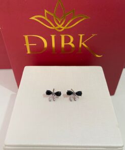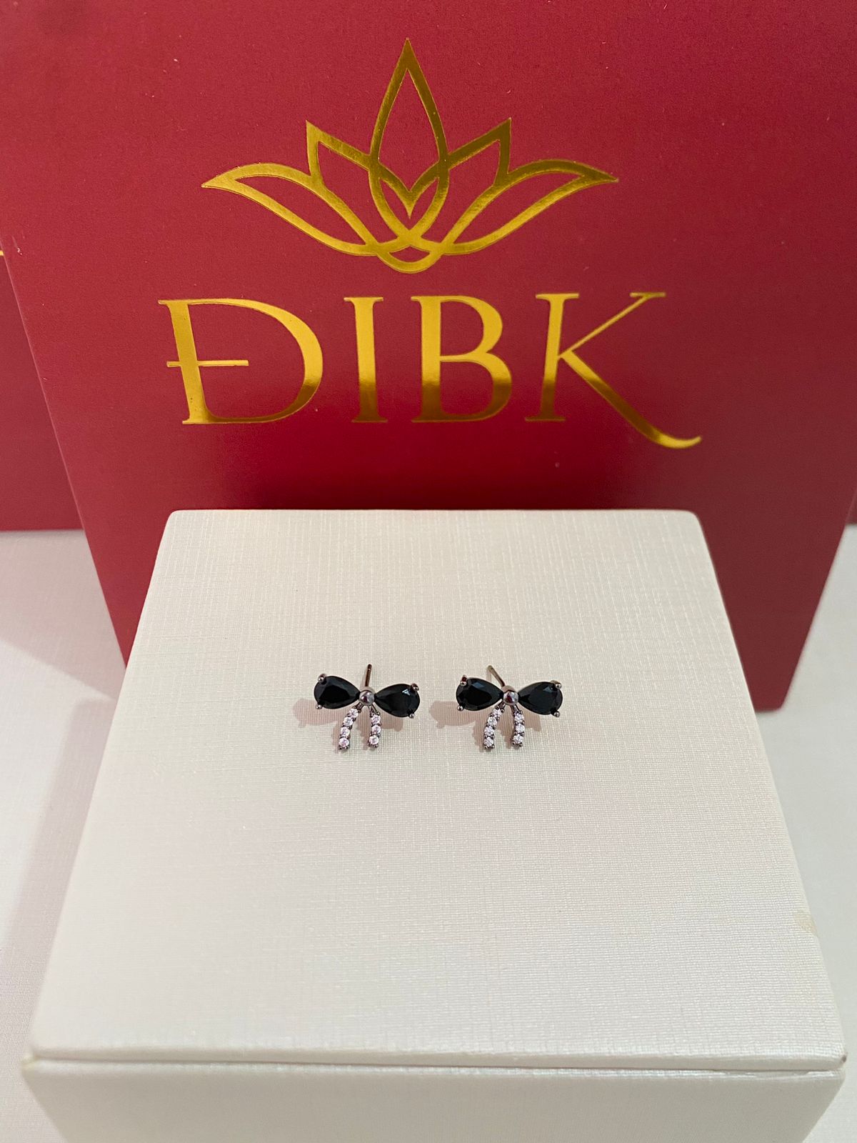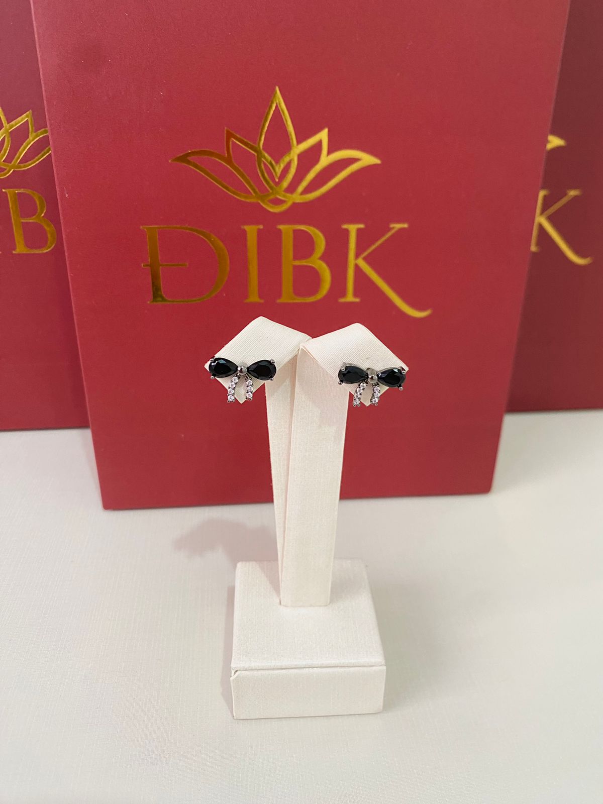 Este par de brincos delicados apresenta um charmoso design em formato de laço. As pedras negras em lapidação de gota compõem a estrutura principal, criando um contraste sofisticado com os pequenos cristais brancos que formam as pontas do laço. A combinação de tons escuros e brilhos sutis confere à peça um toque elegante e contemporâneo, perfeito para complementar tanto produções clássicas quanto modernas. Um acessório encantador que adiciona feminilidade e requinte ao visual.