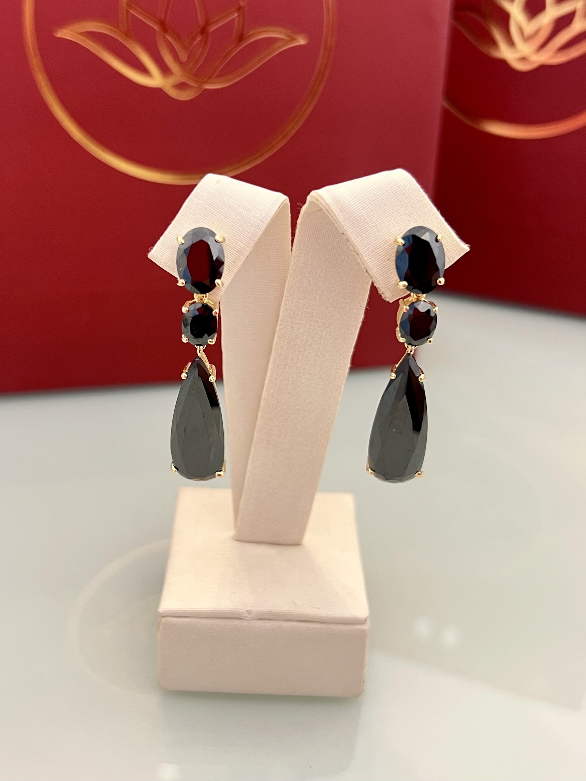 Brinco longo com design em formato oval e gota na cor negra, que cria um visual elegante e marcante. O contraste da tonalidade escura com o acabamento polido valoriza a peça, trazendo presença e sofisticação na medida certa. Ideal para compor produções noturnas ou looks que pedem um acessório de destaque.