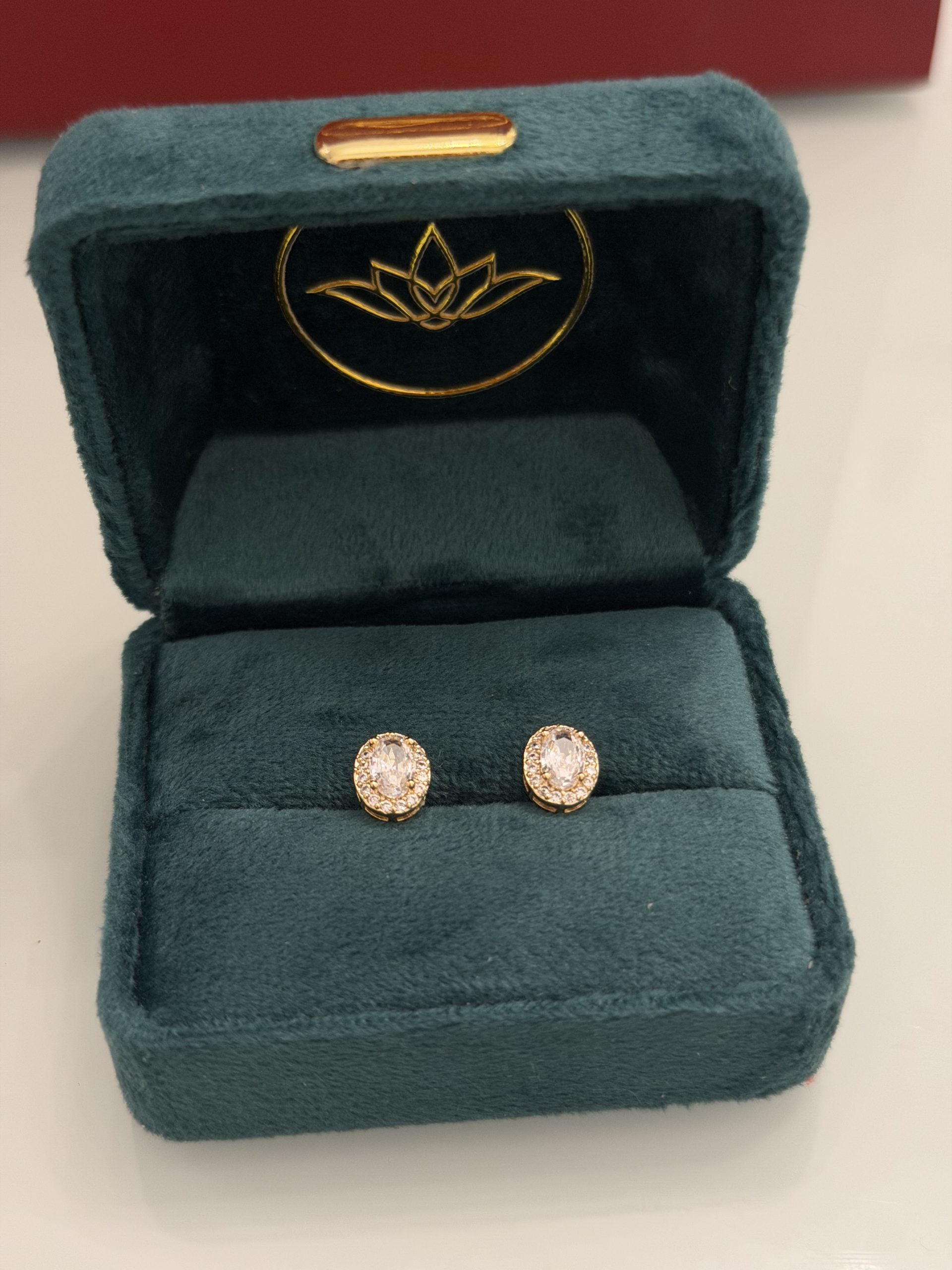O brinco oval cravejado menor é luminoso do início ao fim. As pedrinhas em cristal refletem a luz em cada movimento, enquanto o dourado traz um acabamento sofisticado à peça. Pequeno e cheio de brilho, ele é perfeito para quem gosta de acessórios delicados que não passam despercebidos.