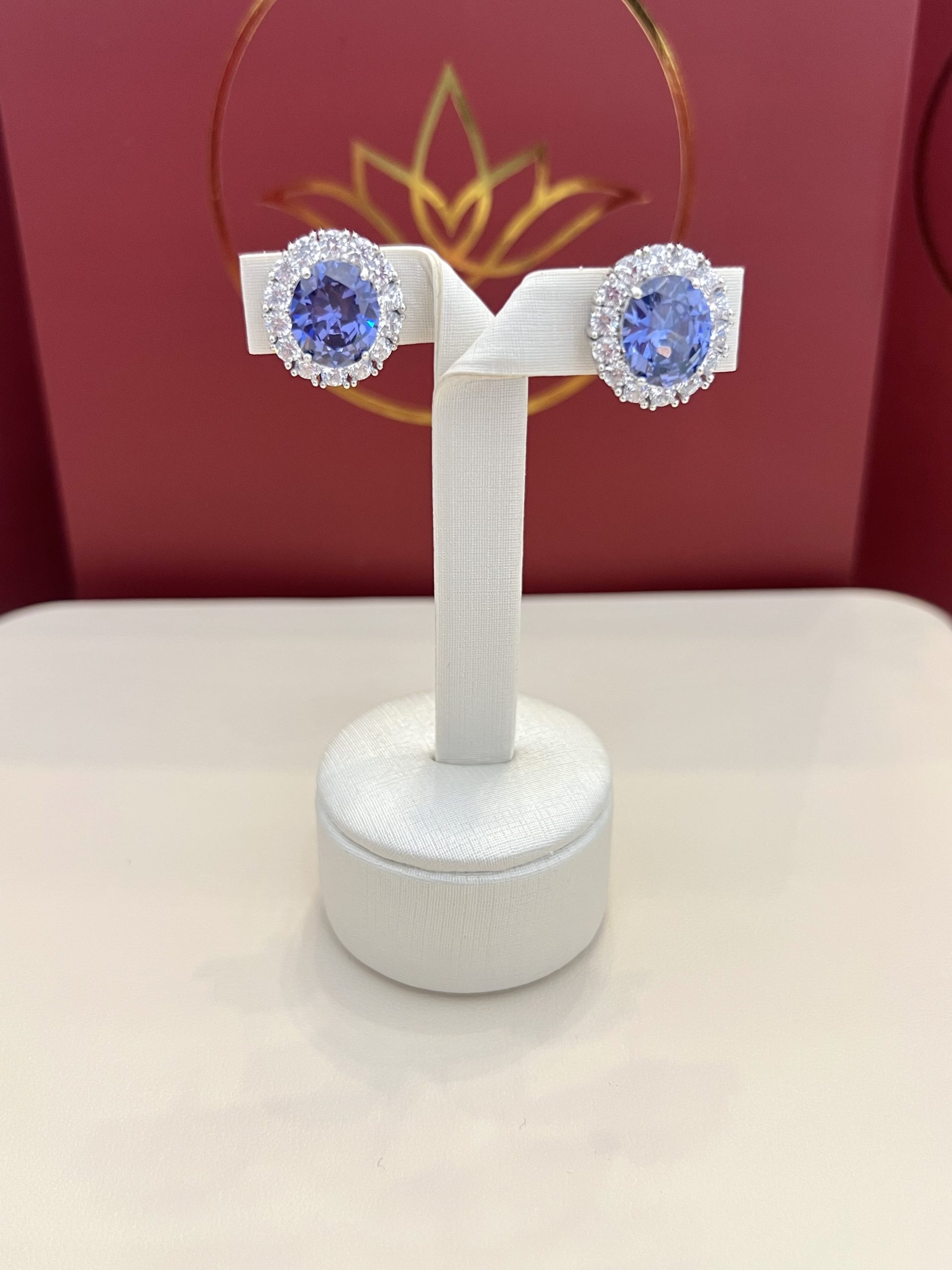 Brinco em prata925 com pedra central na cor azul tanzanita medindo 10x12mm, rodeada por delicadas pedras brancas que ampliam o brilho e destacam ainda mais a intensidade da cor. O contraste entre o azul profundo da pedra e o acabamento prateado cria um visual marcante e elegante, ideal para ocasiões especiais ou para transformar produções do dia a dia com mais presença.