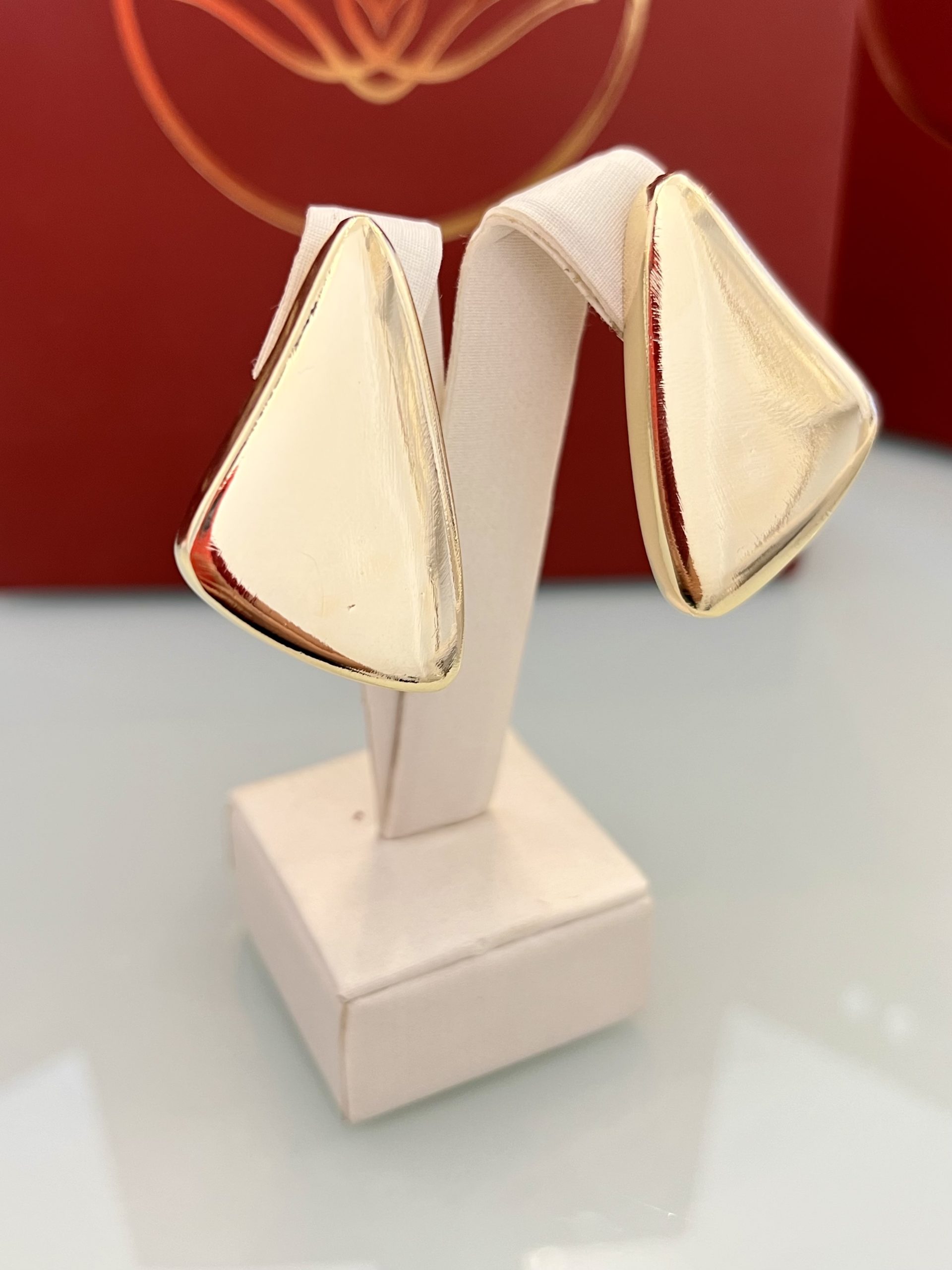 Brinco de pressão com design triangular e acabamento liso e polido. O formato geométrico traz um visual moderno e bem definido, enquanto a estrutura confortável garante um encaixe seguro. Uma peça elegante e atual, ideal para quem busca destaque com praticidade no dia a dia.