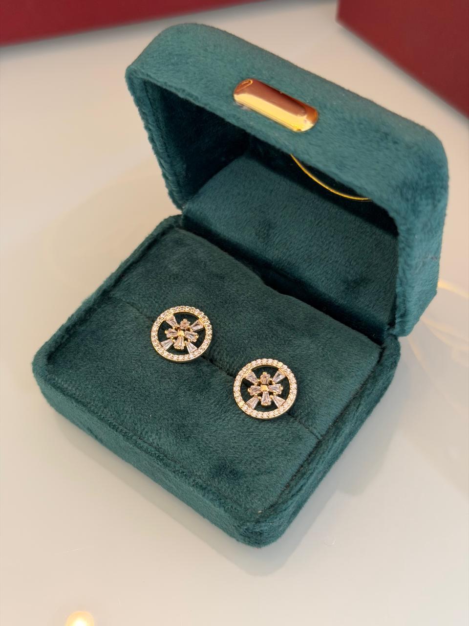 O formato redondo com cristais transparentes traz um brilho contínuo e elegante ao rosto. O dourado cria um contraste perfeito com o brilho das pedras, deixando a peça ideal para quem gosta de acessórios que chamam atenção com classe. Uma escolha certeira para compor qualquer produção com um toque extra de luz.