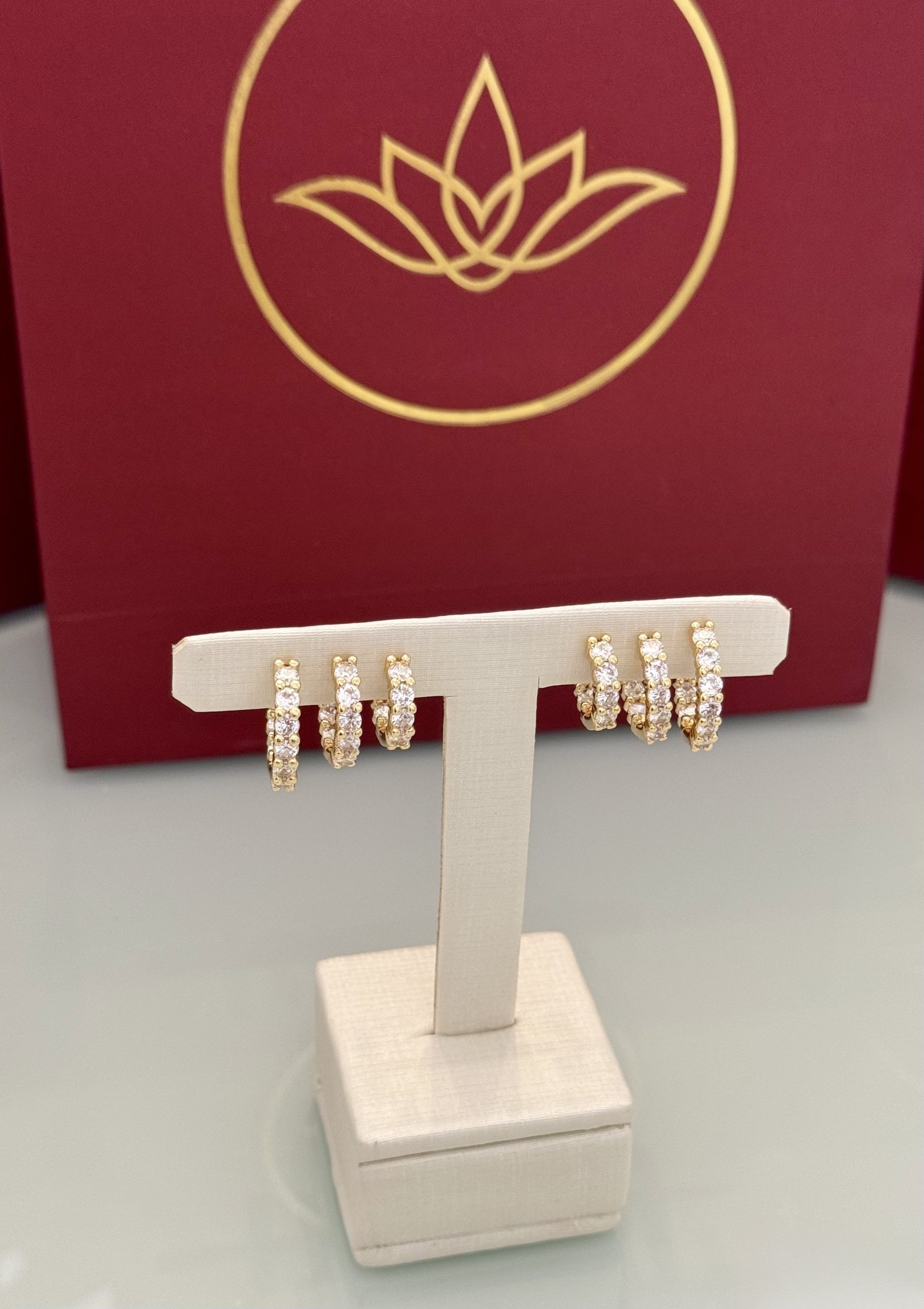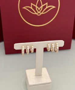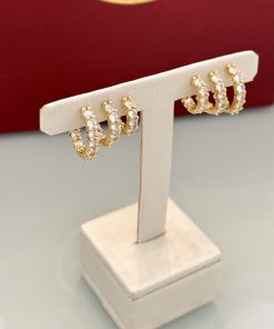 Com um cravejamento duplo, interno e externo, o trio oferece um design sofisticado e elegante. Este acessório é ideal para quem busca um toque de brilho e estilo em qualquer ocasião. Sua construção cuidadosa garante durabilidade, enquanto os detalhes cravejados proporcionam um visual deslumbrante. Perfeito para compor looks variados, é uma escolha versátil para quem aprecia jóias de qualidade.