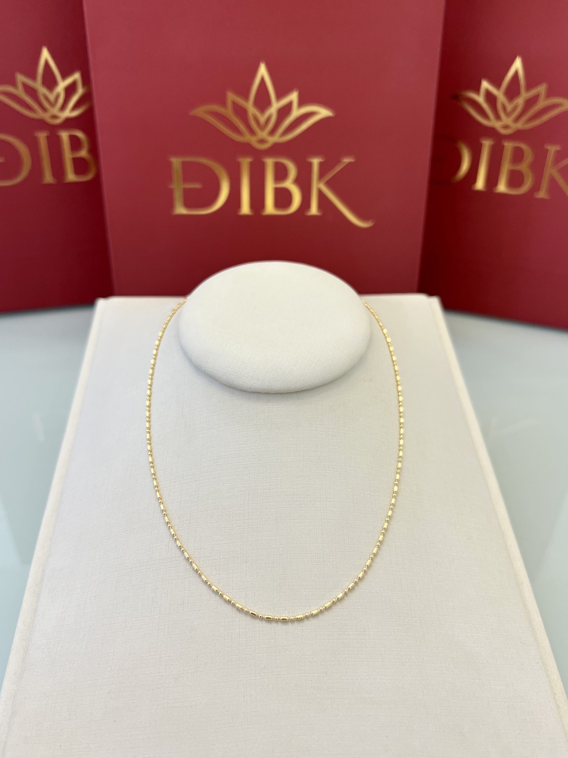 Corrente com traços e bolinhas, delicada e versátil. Ideal para uso diário ou com pingentes, combina com qualquer estilo e acrescenta um toque sutil de elegância ao look.