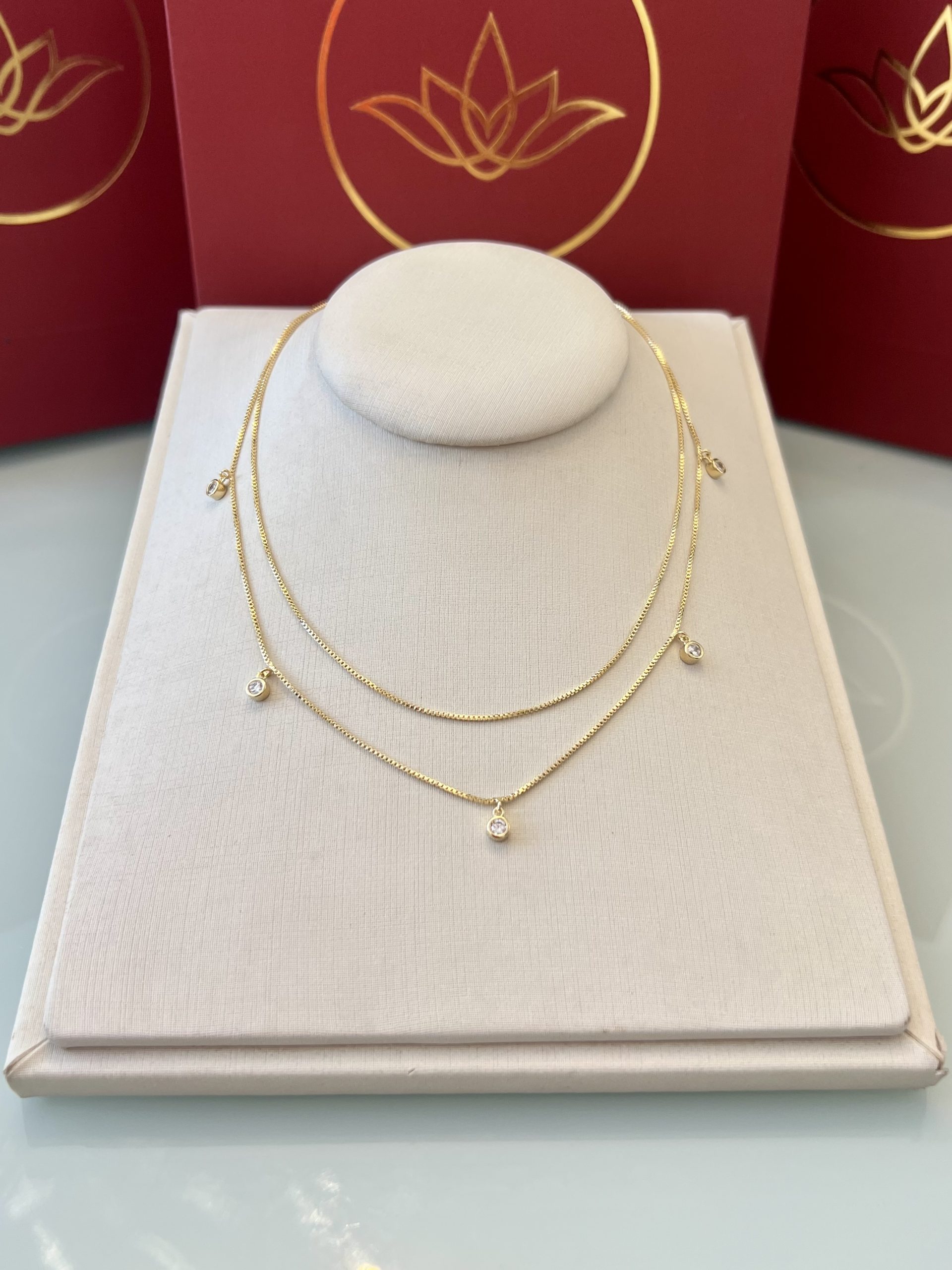 Choker dupla com pontos de luz delicadamente distribuídos ao longo das correntes, criando um brilho suave e equilibrado no colo. O design em duas voltas traz um visual moderno e elegante, valorizando o pescoço com leveza e movimento. Possui 36cm+3cm de extensor, permitindo ajuste confortável e caimento perfeito para diferentes composições.