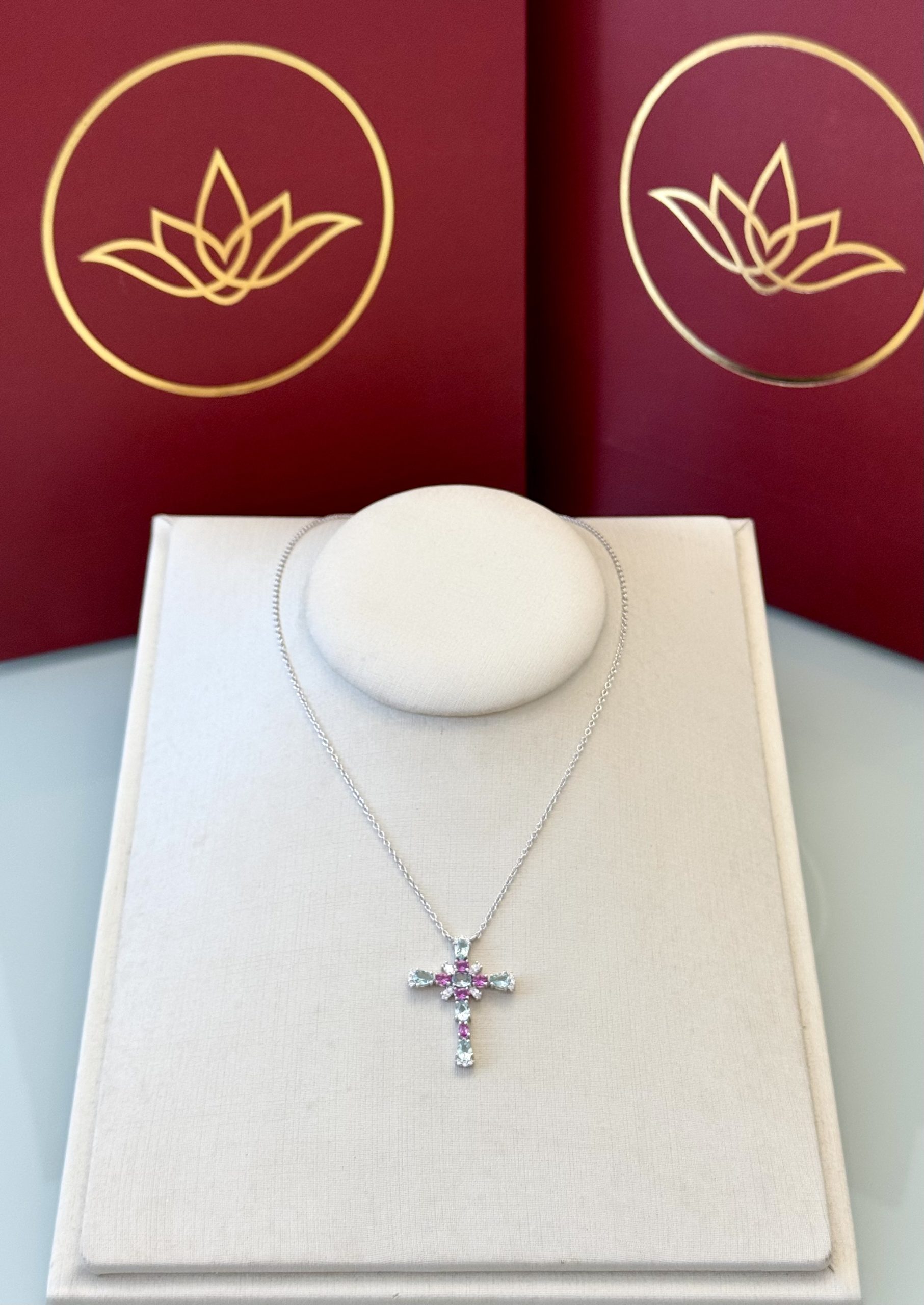 Com um comprimento de 40 cm, mais 5 cm de extensão, o colar cruz colorido em prata 925 é uma peça versátil e elegante.Seu design delicado e moderno combina com diversas ocasiões, tornando-se um acessório ideal para quem busca estilo e sofisticação. A prata 925 garante durabilidade e resistência, enquanto as cores vibrantes do cruzamento adicionam um toque especial ao visual