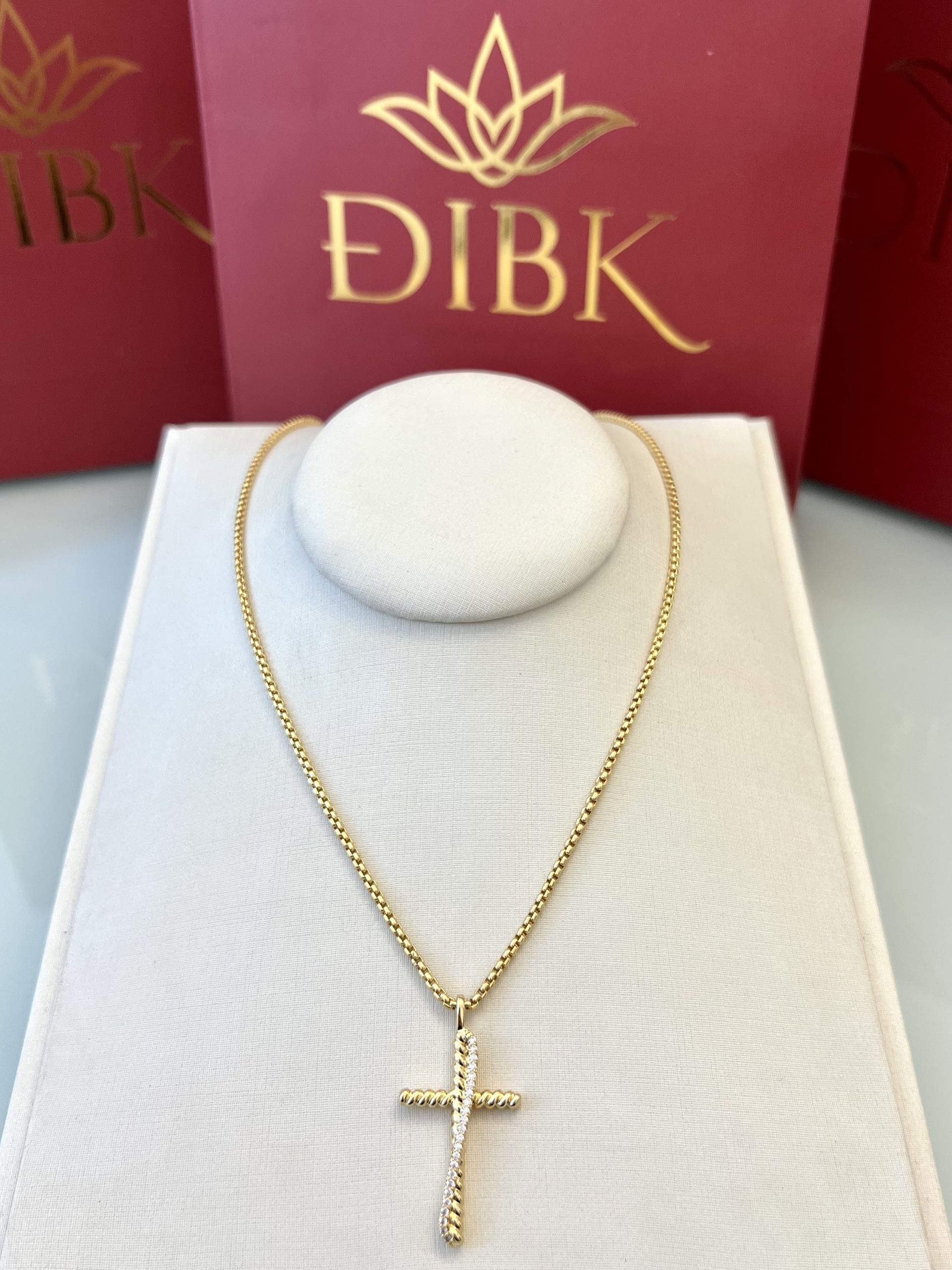 Este colar apresenta um pingente de cruz cravejada, combinando delicadeza e sofisticação. A corrente fina e dourada complementa perfeitamente o pingente, que é ricamente adornado com pedras brilhantes. A cruz tem um design clássico e elegante, com pedras retangulares em cada braço e pequenos detalhes ao redor, acrescentando um toque de requinte à peça. O brilho das pedras realça a beleza do dourado, tornando este colar uma excelente escolha para quem busca um acessório refinado e atemporal. Ideal para ocasiões especiais ou para uso diário, esse colar transmite elegância e simbolismo, unindo espiritualidade e sofisticação em um só item.