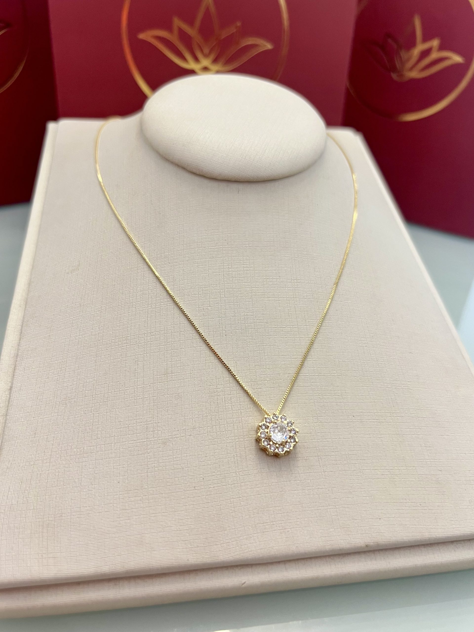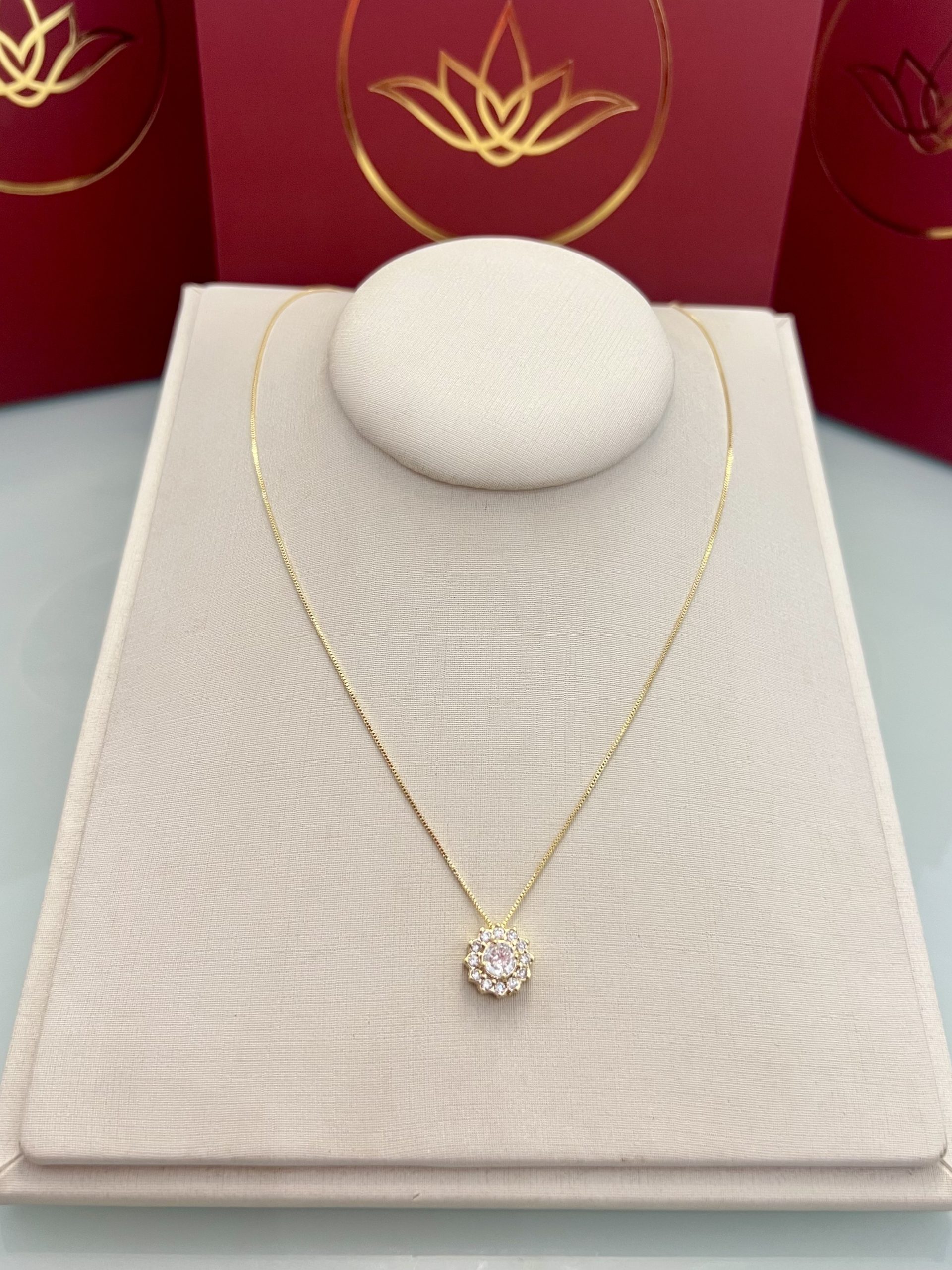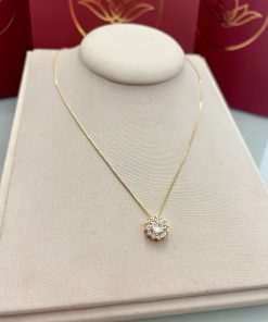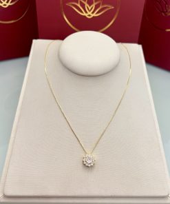 Colar com pingente em formato de flor, acabamento delicado e cravejamento de pedras cristal que destacam o brilho da peça. A corrente possui 46CM com extensor de 5CM, permitindo ajuste ideal ao colo e valorizando o detalhe central com leveza e presença.