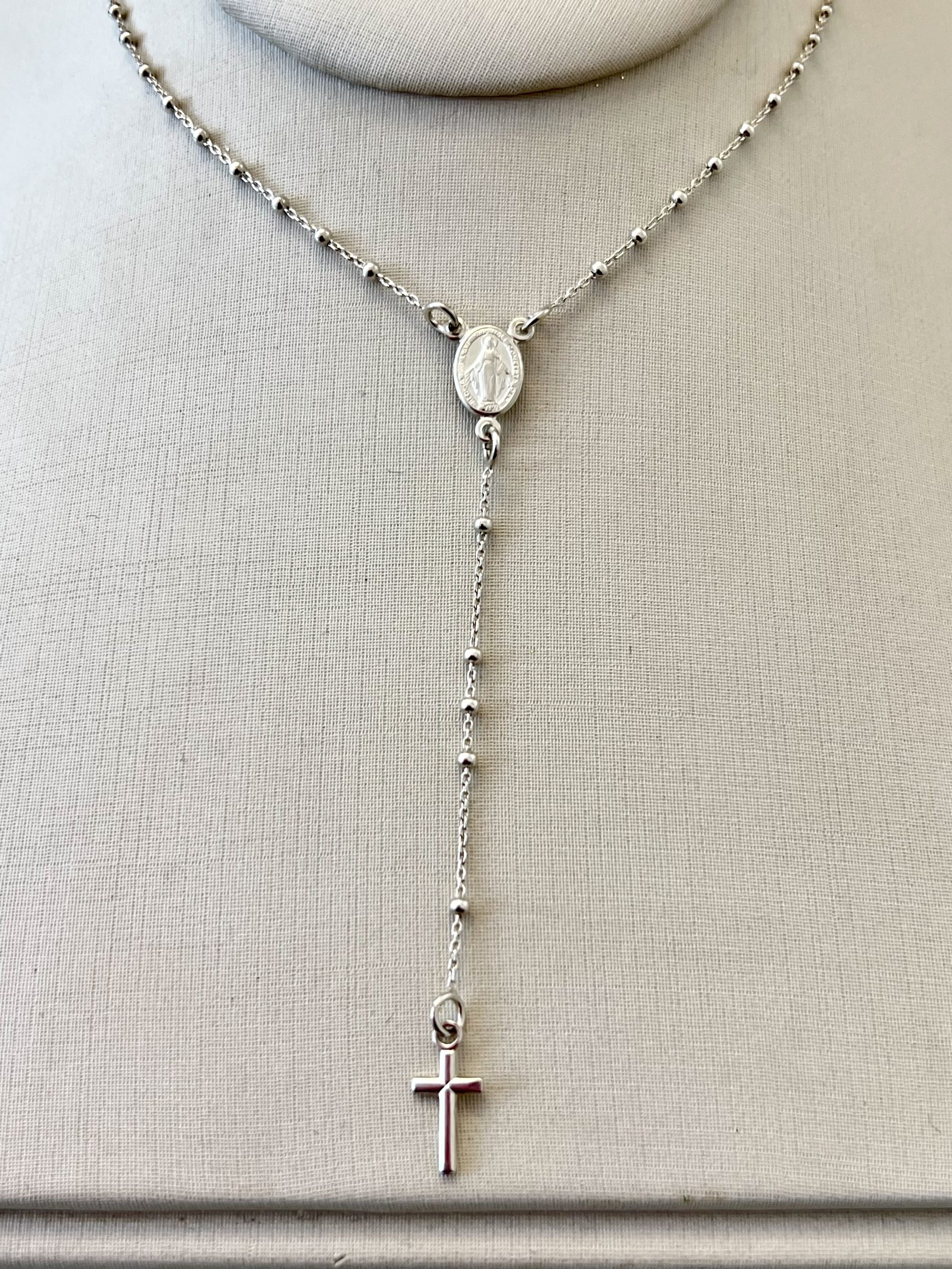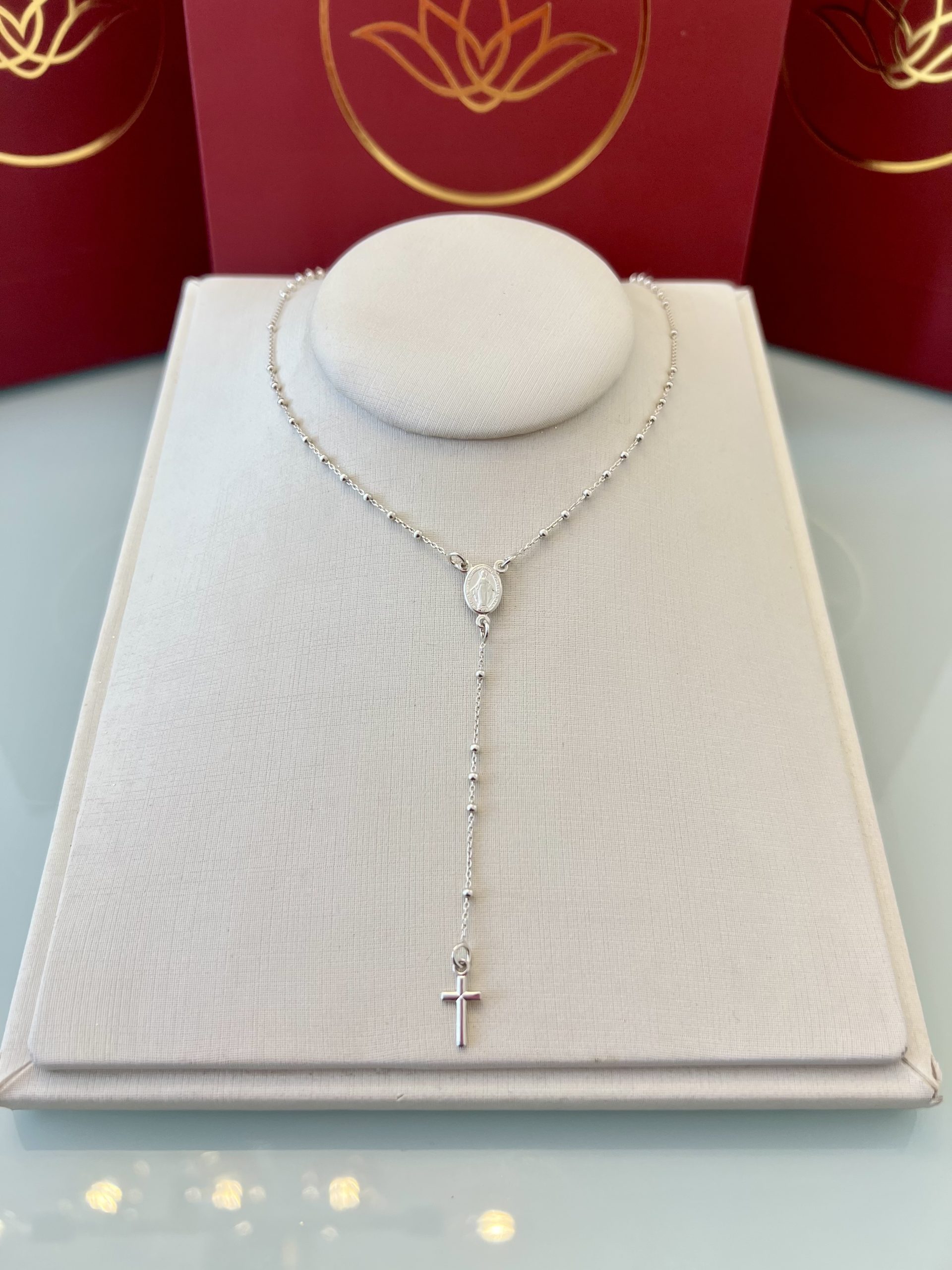 Um terço em prata925 que encanta pelos detalhes, trazendo brilho sutil em cada conta. Seu design clássico transmite fé e proteção com um toque moderno, perfeito para acompanhar no dia a dia ou para presentear alguém especial.