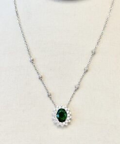 Um design elegante e atemporal, o gargantilha é feita em prata925, garantindo durabilidade e resistência.Possui um extensor de 5 cm, permitindo ajuste confortável ao redor do pescoço. A pedra em formato oval em esmeralda adiciona um toque de sofisticação, tornando-a ideal para diversas ocasiões.