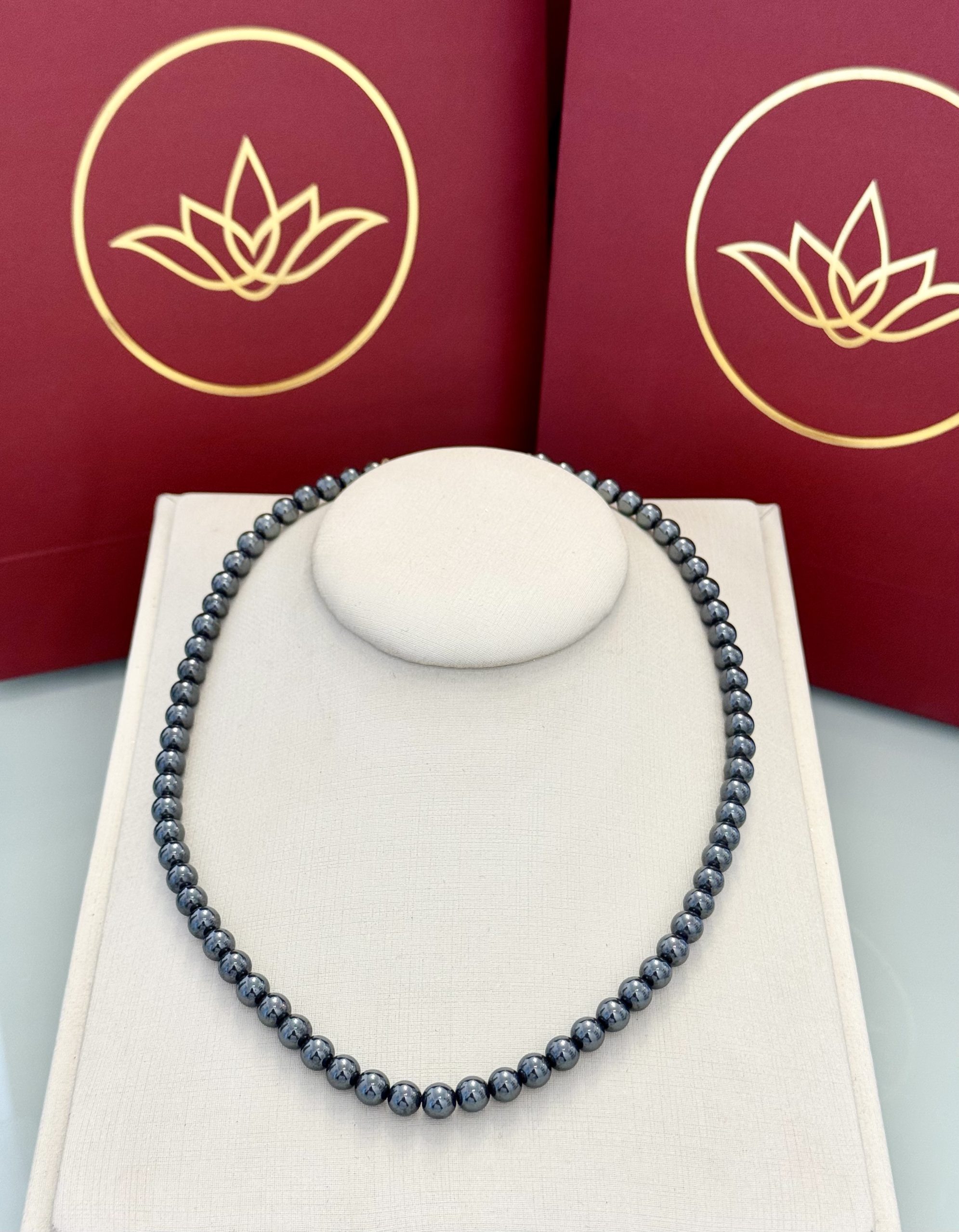 Com 40 cm de comprimento, a gargantilha de hematita é uma peça elegante e sofisticada. Fabricada em prata 925, combina durabilidade e estilo, sendo ideal para diversas ocasiões.