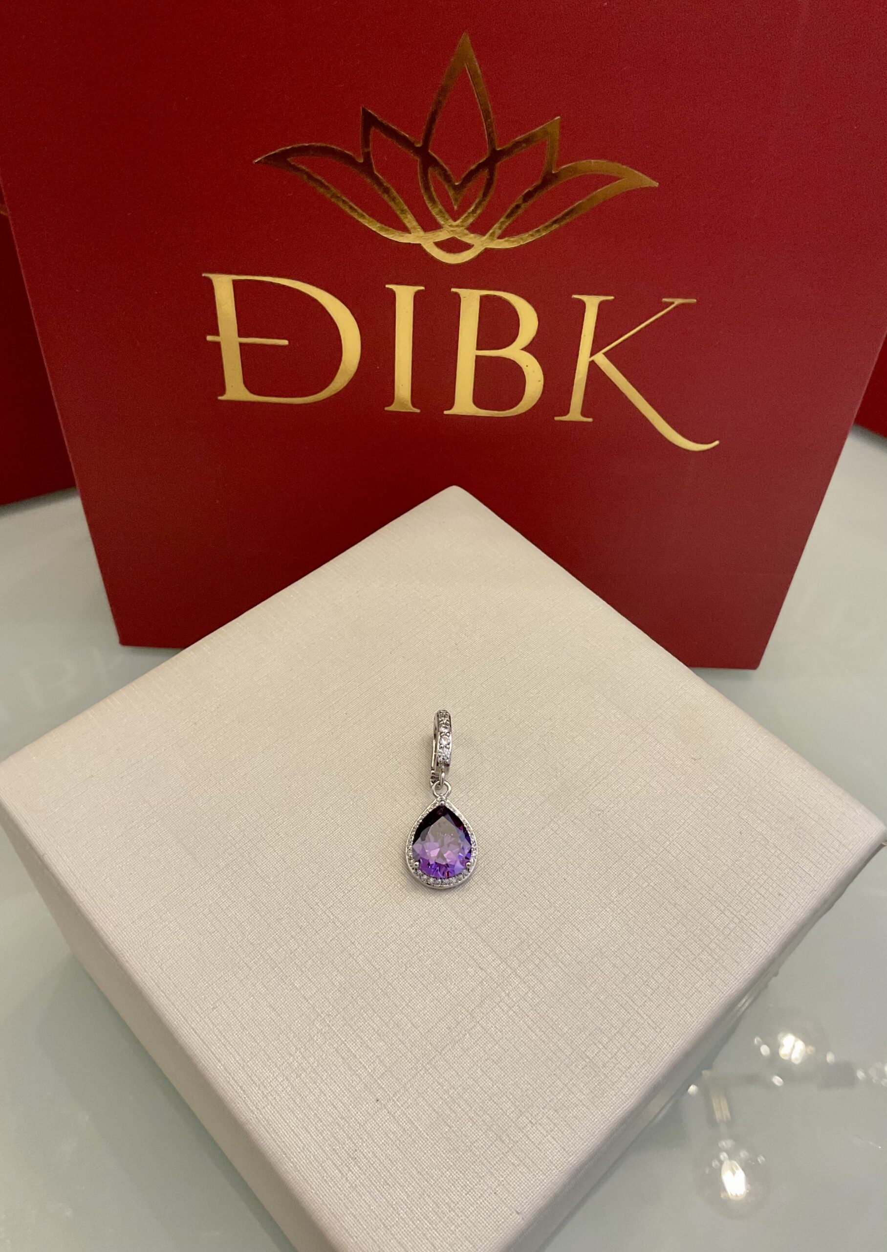 Pingente gota roxo cravejado