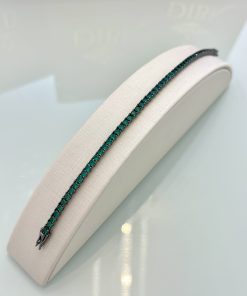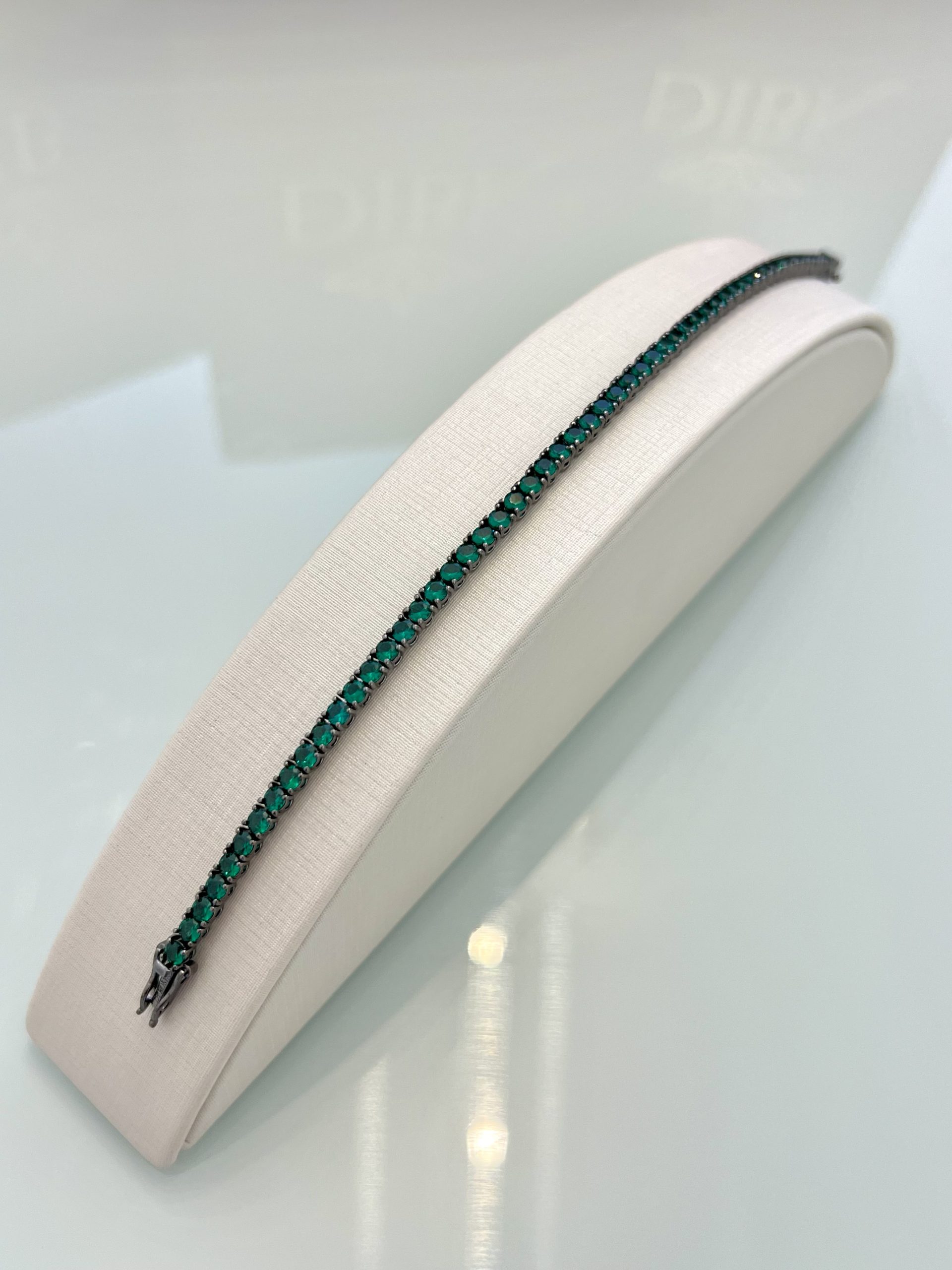 A pulseira Riviera esmeralda é uma joia que celebra o brilho e a cor. Suas pedras em verde intenso se alinham perfeitamente ao longo da prata925, criando um contraste que chama atenção pela luminosidade. Cada esmeralda é cravejada com precisão, formando um caminho de brilho contínuo que contorna o pulso com muita personalidade. O acabamento em prata925 garante durabilidade e um visual sofisticado, ao mesmo tempo em que realça a tonalidade vibrante das pedras. Com 19CM, essa pulseira oferece um ajuste confortável, valorizando o braço com elegância em qualquer produção do dia a dia a eventos especiais.